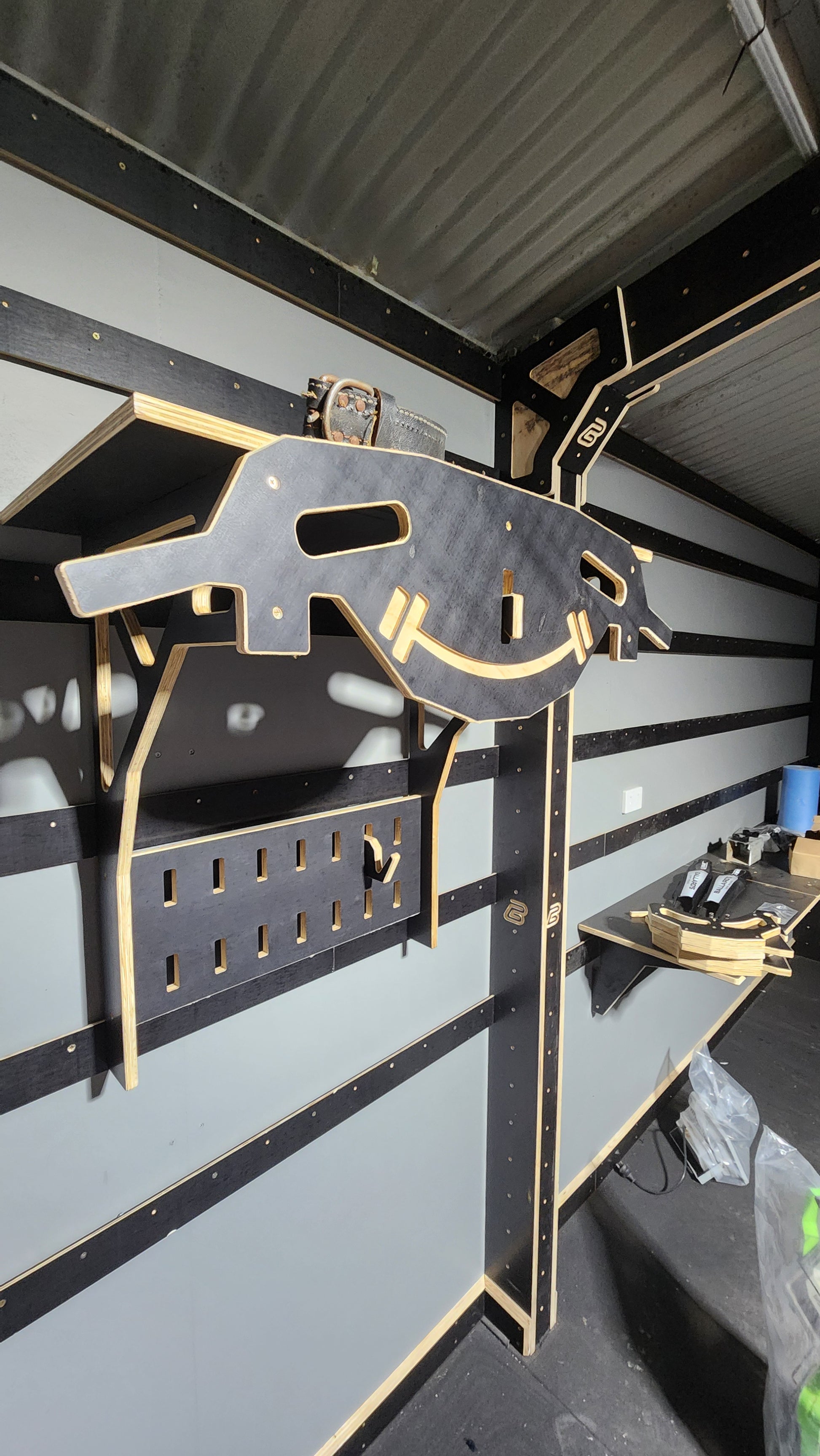 Transform your home gym with this versatile chin up rack system. Engineered to mount seamlessly onto French cleat walls, it delivers a fully customizable workout setup tailored to your space. The package includes detailed machining instructions via text file, making fabrication straightforward. A built-in 14-slot storage rack on the vertical frame keeps removable hooks organized and within reach. The chin up bar features elastic strap attachment points, enabling assisted pull-ups for progressive strength training. Whether you're building foundational upper body power or advancing your fitness routine, this modular design grows with your goals while maximizing your wall real estate.