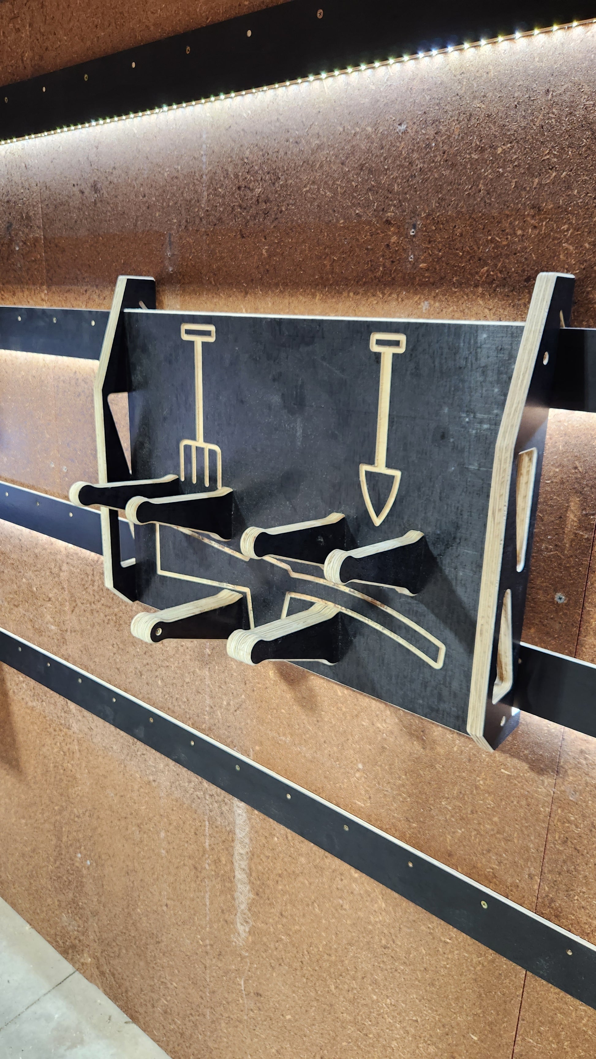 Great way to store common gardening tools. The hooks are long enough to store multiples of each item.